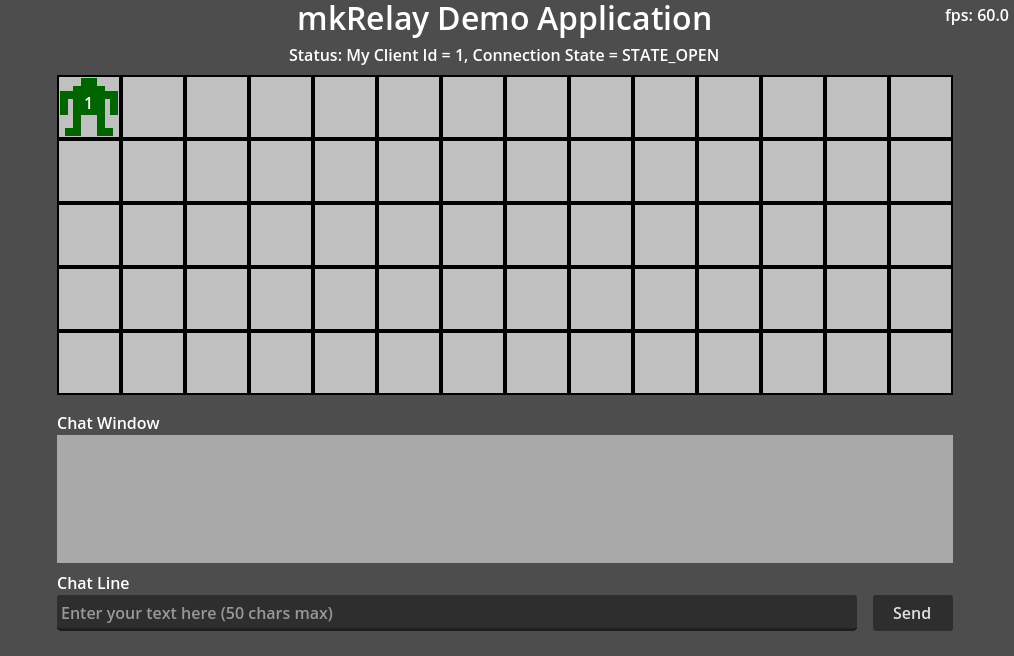 Before going into more detail on how to roll your own server and client, you might want to check out the “live demo” client: A Godot web application, connecting to my little test relay server. You can post chat messages and move an icon around by clicking. You might want to use several browser instances for your own little multiplayer game experience.